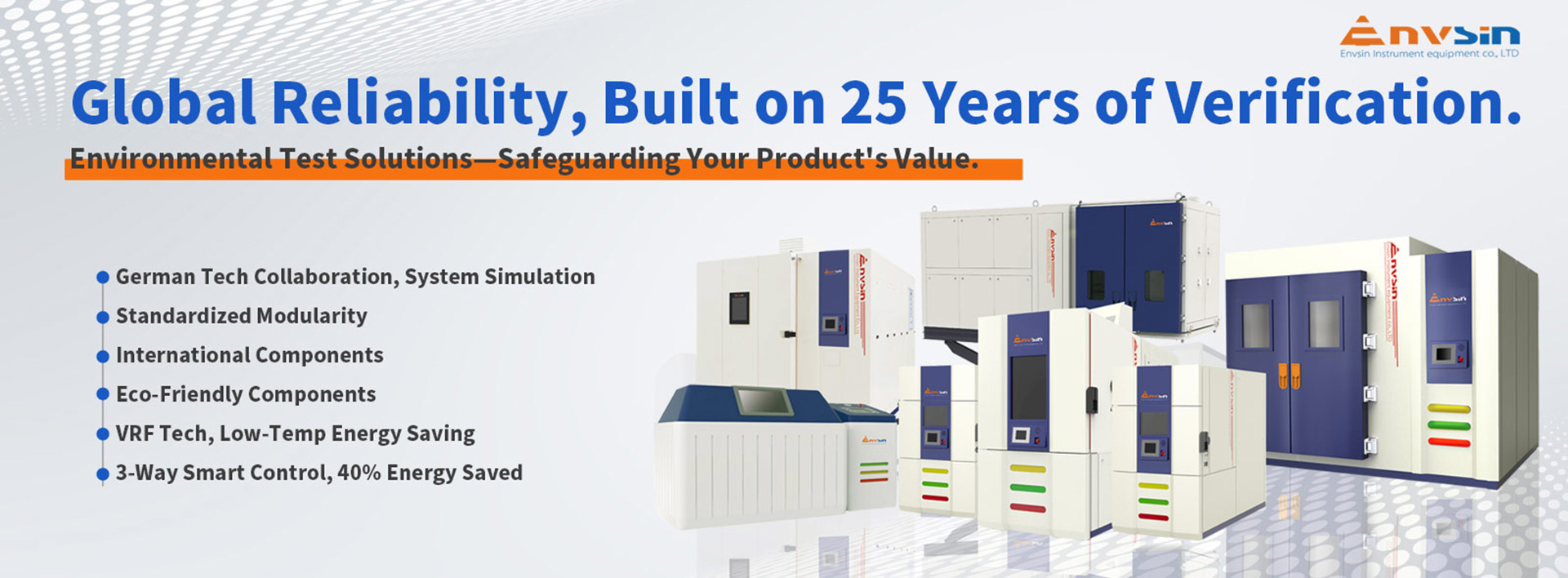 Компания Envsin предоставляет передовые испытательные камеры для широкого спектра отраслей промышленности. В частности, для автомобильной и аэрокосмической промышленности, электроники, новой энергетики и материаловедения. Наши стандартные и индивидуальные решения сочетают в себе точность проектирования, надежность работы и строгое соответствие международным стандартам испытаний, таким как IEC, ASTM, ISO и MIL-STD. Наша опытная команда инженеров работает в тесном сотрудничестве с вами, чтобы подобрать подходящую испытательную систему, отвечающую вашим конкретным требованиям требованиям и отраслевым спецификациям.